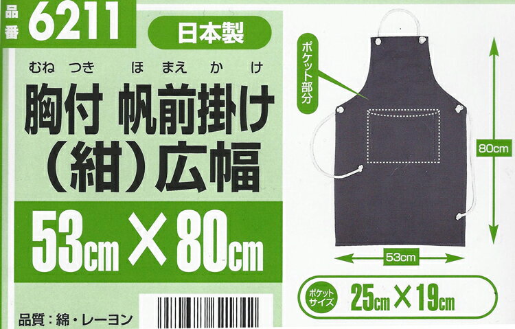 胸付き 帆前掛け 紺色 ot6211 酒屋前掛け 帆布