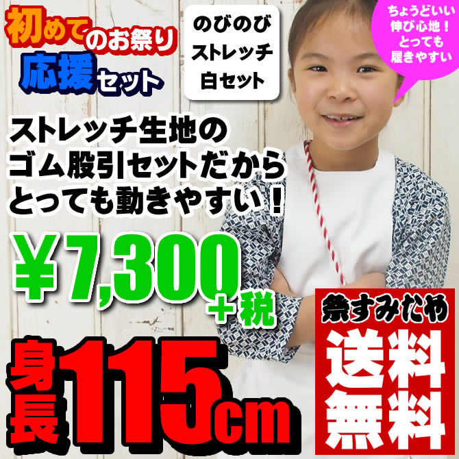 <送料無料キャンペーン> 初めてのお祭り応援セットのびのびセット(白)サイズ:115(5〜6歳用)ほどよく伸びるストレッチ素材のゴム股引使用 [ 祭り 衣装 子供 お祭り用品 お祭り 衣装 子供 ストレッチ 股引 ゴム 祭 ]