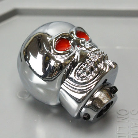 サイズ(約) H6cm X W4cm X D5cm 差し込み穴直径 1.3cm 素材 プラスチック製 備考 イモネジ、レンチ、アタッチメントスリーブ付属 アメリカ流通アイテム怪しく輝くクロームメッキスカル!車内インテリアが一変します♪