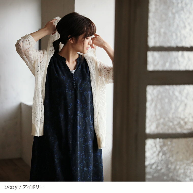 ボタンのないフロントや華奢な手首がのぞく7分袖で、自然とすっきり見えるのも魅力です。
